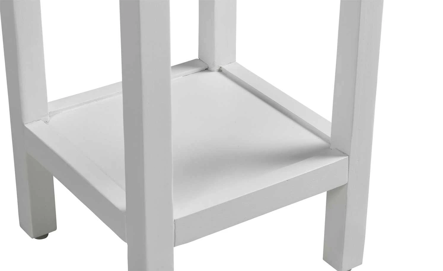 Auf dem Blumenständer Florenz können Sie Pflanzen, eine Lampe oder auch ein Telefon platzieren. Der Rahmen und das Gestell sind aus massiver Kiefer. Florenz ist komplett weiß lackiert worden. Der helle Farbton passt gut zum romantischen Landhausstil des Blumenständers. In der Schublade können Sie Krimskrams unterbringen.