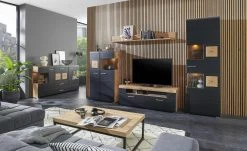 Natürlich und skandinavisch-modern wirkt das Sideboard Cap Ferrat One von der Marke Gray & Jones. Front und Korpus sind hochwertig furniert, für die Füße ist Massivholz verwendet worden. Das Eichenholz hat eine attraktive Maserung mit Asteinschlüssen als Eyecatcher. Die natürlichen Risse wurden schwarz verfüllt. Damit sie voll zur Geltung kommen, ist auf eine zusätzliche Oberflächenbehandlung verzichtet worden. Einziger Akzent: gebürstete Metallgriffe. Cap Ferrat One ist links mit zwei Türen und rechts mit drei Schubladen ausgestattet. Sie haben eine Soft-Close-Funktion und schließen geräuscharm.