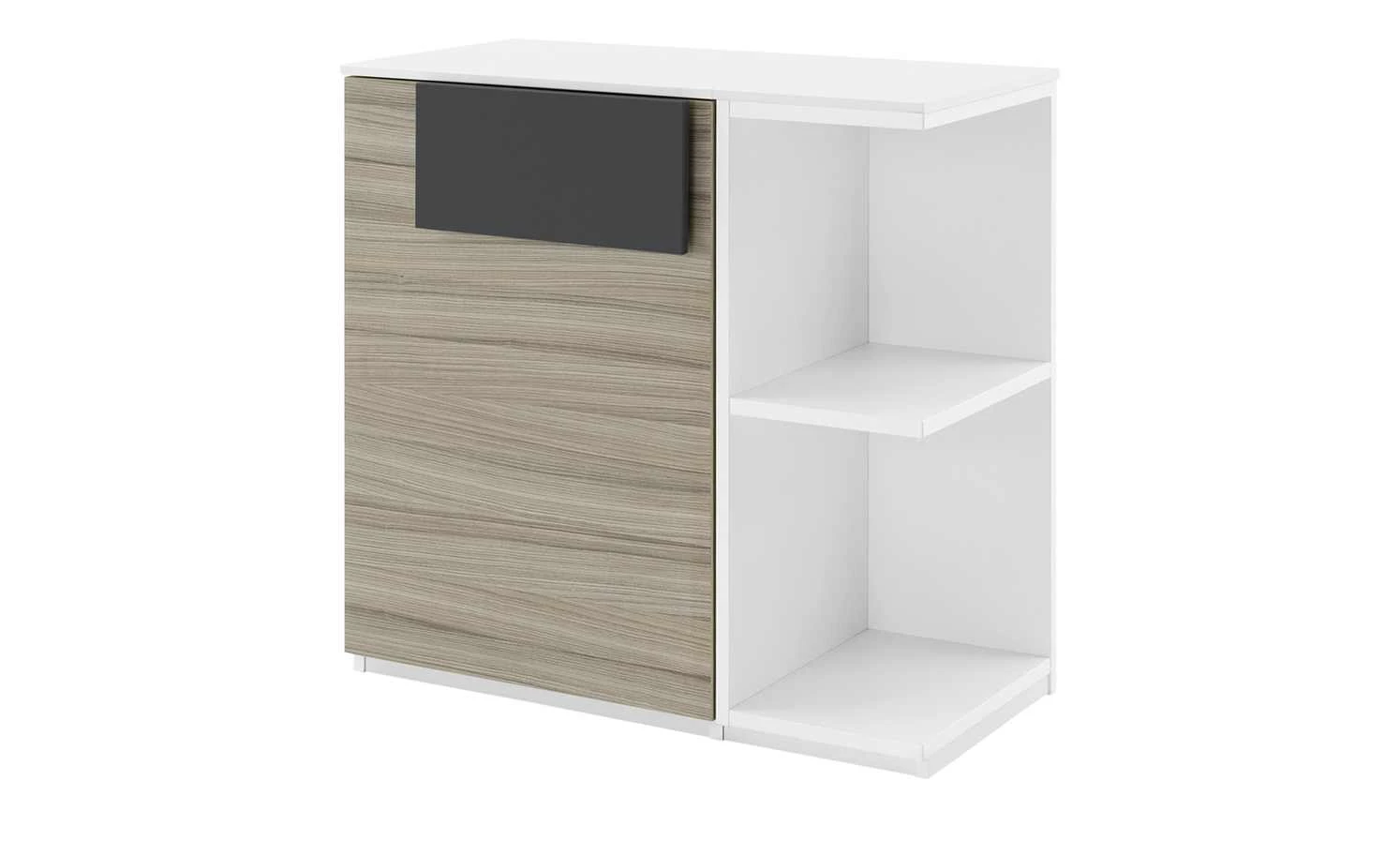 - Mehr zu Ausstattung / Funktion: Korpus: 16 mm stark mit Dekorkante, 2 offene Fächer, Front: 19 mm stark mit ABS-Kante, Drehtür mit Metall-Topfbandscharniere mit 110 Grad Öffnungswinkel