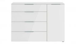 Mit ihrem jungen, frischen Design fällt die Kommode Uno sofort ins Auge. Sie ist mit dem German Design Award Special 2019 ausgezeichnet worden. Die Oberflächen sind weiß lackiert. Das matte Finish lässt den Farbton noch edler und moderner wirken. Uno verfügt über zwei Fächer, die von einer Tür verschlossen werden. Letztere ist mit einer Soft-Close-Funktion ausgestattet, die für ein leises Schließen sorgt.