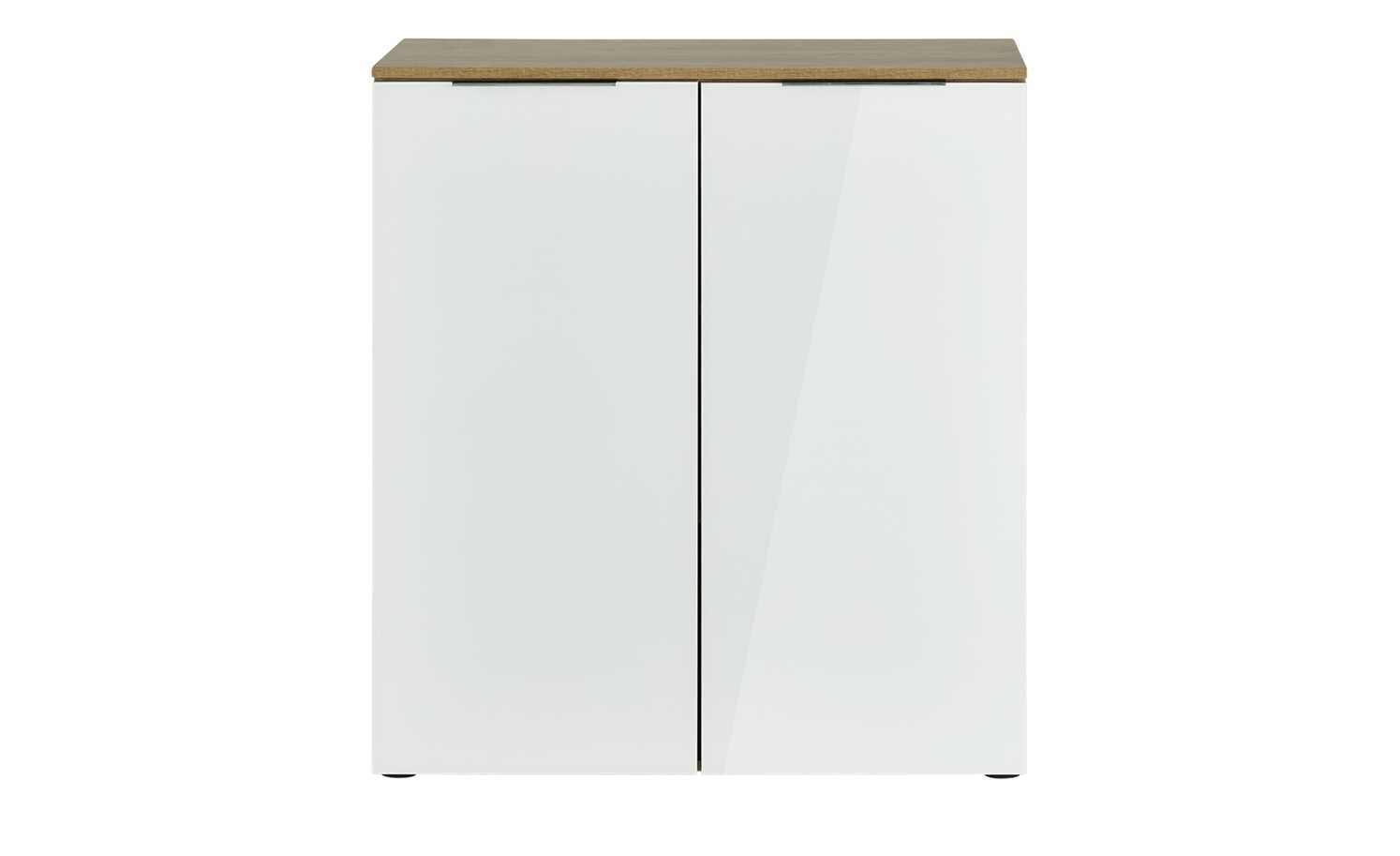 Mit ihrem modernen Look und praktischen Nutzen ist die Kommode Vitreo ein Highlight für jeden Raum. Die geradlinige Linienführung wird mit einem puren und leuchtenden Weiß kombiniert. Die Front hat eine Oberfläche aus ESG-Sicherheitsglas. Es ist besonders hart und widerstandsfähig – und gibt der Front ein glänzendes Finish. Zusätzliche Akzente werden durch die verchromten Griffleisten gesetzt. Der Korpus der Kommode hat eine natürliche Holzoptik. Er ist melaminbeschichtet und somit kratzerunempfindlich und leicht zu pflegen. Vitreo ist mit zwei Türen ausgestattet, hinter denen Ihnen drei Fächer zur Verfügung stehen. Beide Türen haben eine integrierte Soft-Close-Funktion für leises Schließen.