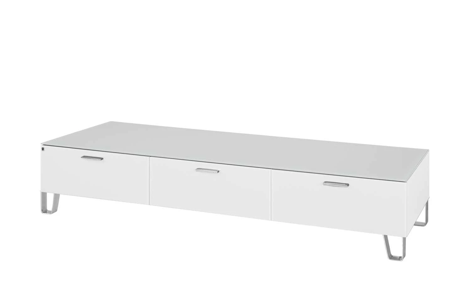 Stilvoll-edles Design, praktischer Nutzen und erstklassige Qualität vereinen sich beim TV-Unterteil Cube von LEONARDO. Front und Korpus haben eine Oberfläche aus lackiertem ESG-Sicherheitsglas. Es ist besonders stabil und zudem pflegeleicht. Dank der glänzenden Glasoberfläche kommt die weiße Farbe von Cube besonders schön zur Geltung. Das TV-Unterteil ist mit bis zu 30 Kilogramm belastbar und kann für TV-Geräte bis zu 75 Zoll Größe verwendet werden. Stauraum befindet sich in drei Schubladen. Alle drei haben einen Vollauszug und sind mit einem Selbsteinzug für langsames und leises Schließen ausgestattet.