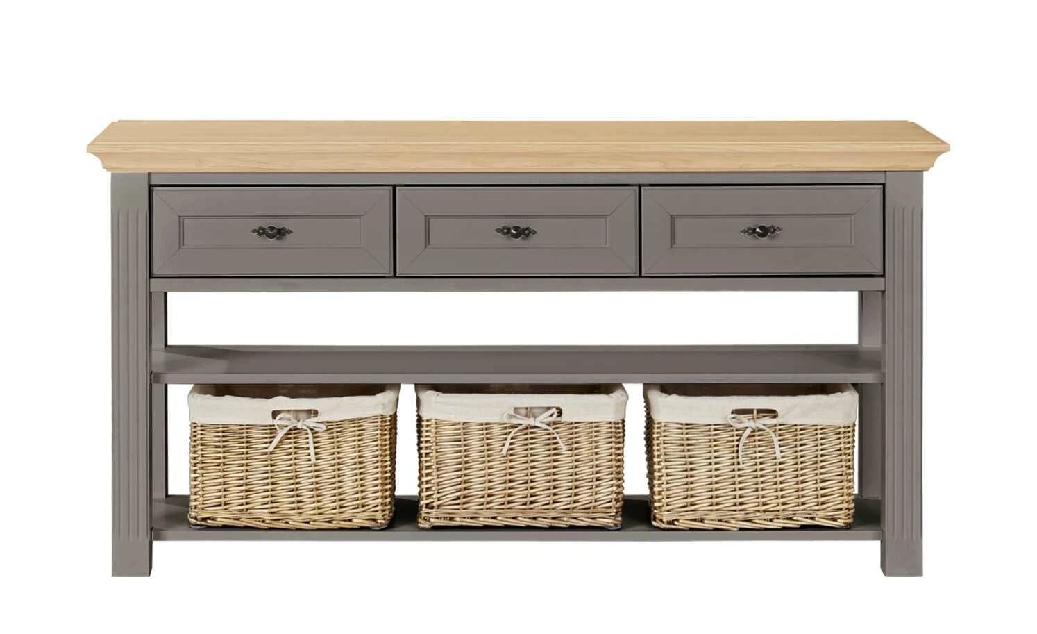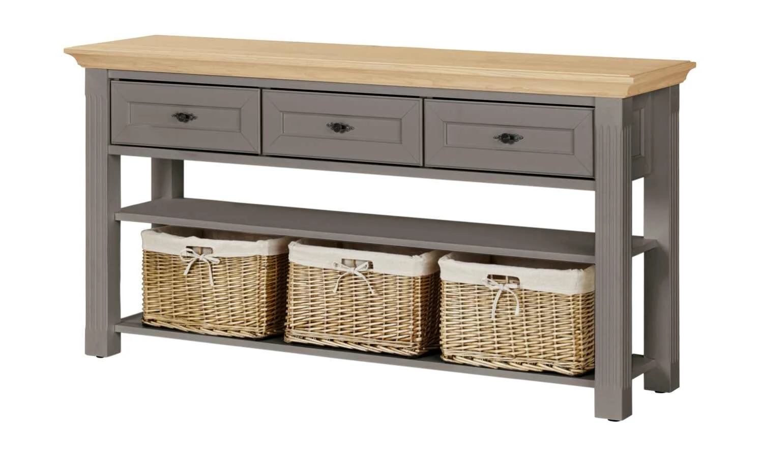 maison bleue Anrichte Petit Chalet | Graphit (Grau) / Asteiche mit Flechtkörben