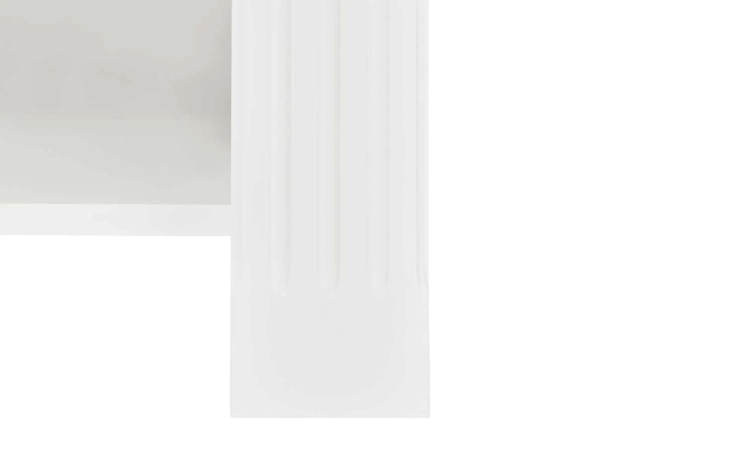 - Mehr zum Material: Korpus und Front aus Holzwerkstoff Weiß lackiert, Absetzung aus Asteiche furniert