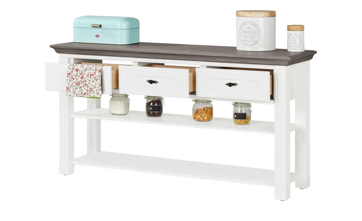 maison bleue Anrichte Petit Chalet | Weiß / Graphit (Grau) ohne Flechtkörbe