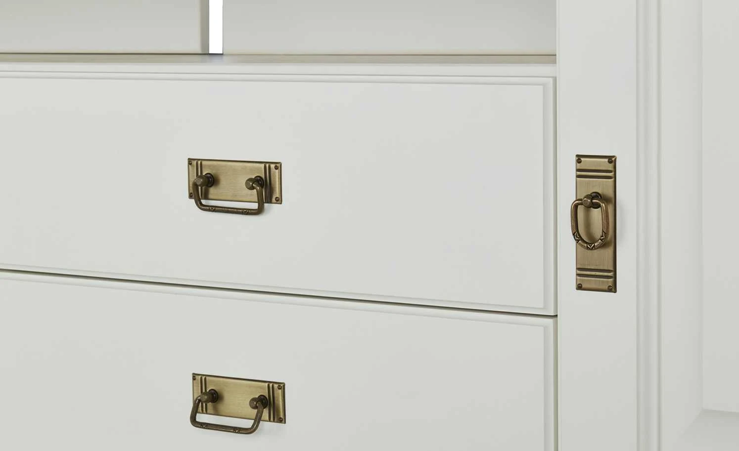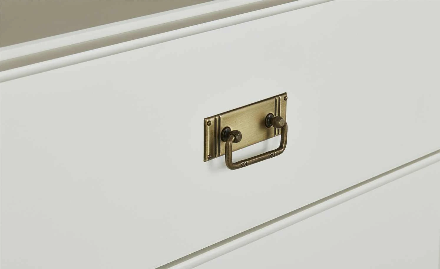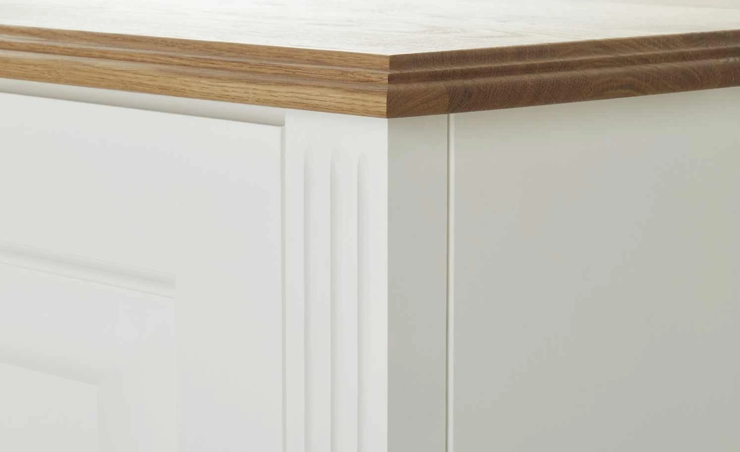 - Mehr zum Material: Korpus und Front aus nordischer Polarkiefer massiv in Reinweiß lackiert, Oberplatte aus Wildeiche natur massiv geölt