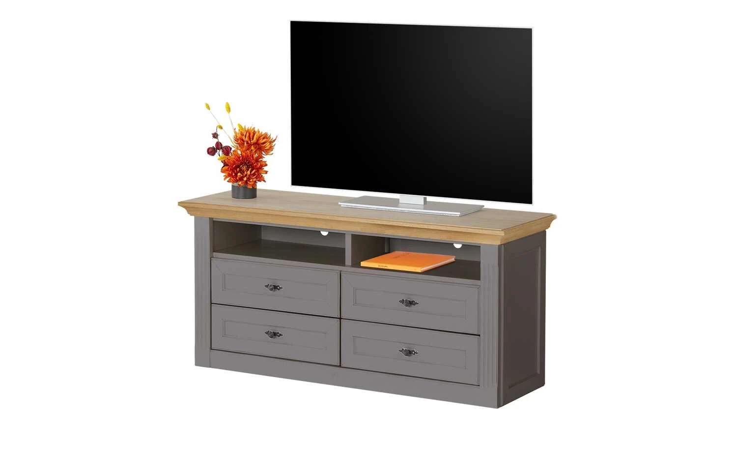 - Mehr zum Material: Korpus und Front aus Holzwerkstoff Graphit lackiert, Absetzung aus Asteiche furniert