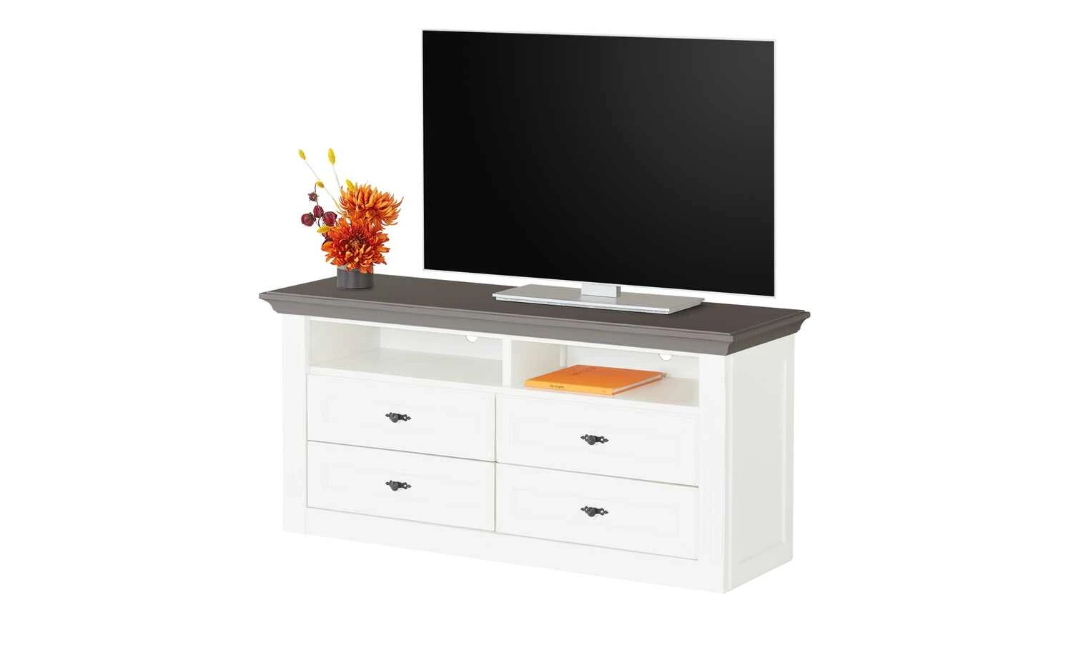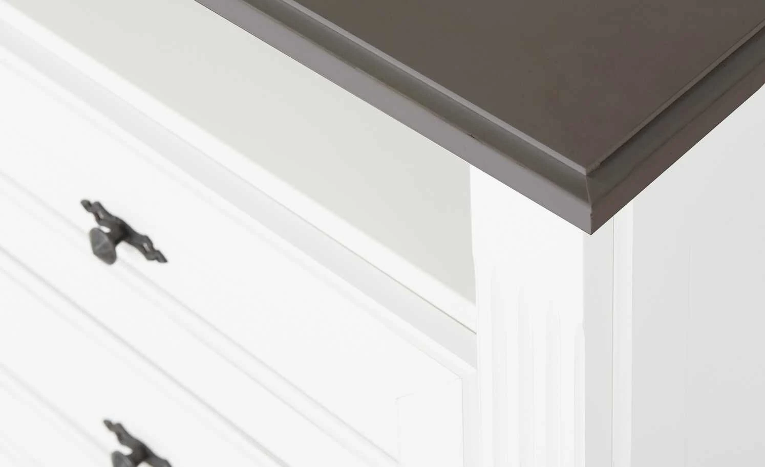 - Mehr zum Material: Korpus und Front aus Holzwerkstoff Weiß lackiert, Absetzung aus Holzwerkstoff Graphit lackiert