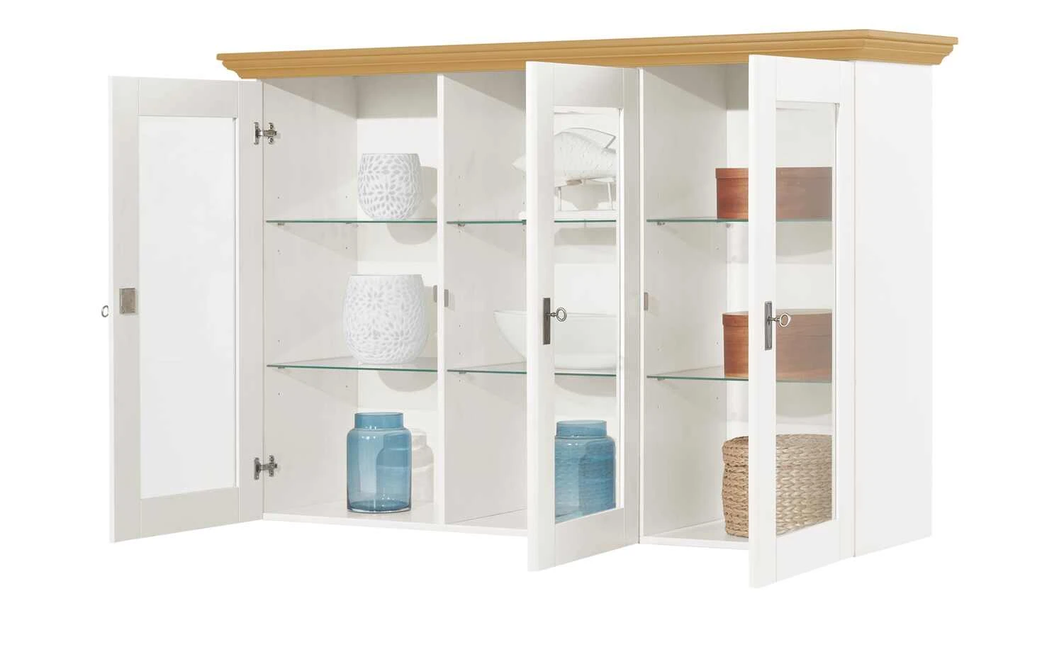 maison bleue Vitrinenaufsatz für Sideboard Florian | Weiß / laugenfarben