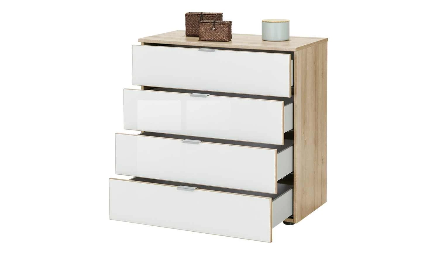 - Glasfronten der Schubkästen sorgen für eine moderne Optik