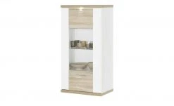 uno Hängevitrine Onyx | Vanille / Eiche sägerau (Nachbildung) Spotbeleuchtung Glastür links