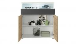 Highboard 2-türig Holly | Weiß / Hickory (Nachbildung) / Anthrazit