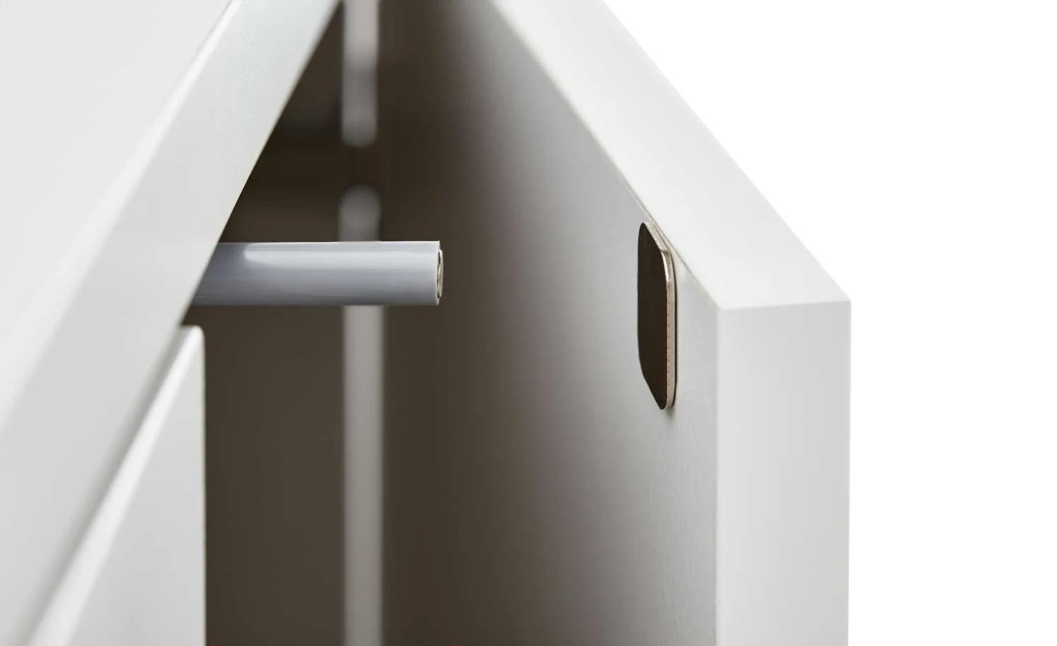- Mehr zum Material: Farbe Füße: Weiß, Oberfläche der Absetzung: Kunststoff Folie (Eiche sägerau Nachbildung)