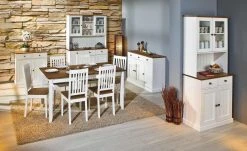 Mit dem Landhausstil können Sie Räume besonders wohnlich und nostalgisch einrichten. Zum Beispiel auch mit dem Sideboard Muslone, das im Landhausstil designt ist. Zu den Verzierungen gesellt sich ein schöner weißer oder grauer Farbton, der durch Akzente in Kiefer Braun abgesetzt wird. Korpus, Front und Böden sind aus massiver Kiefer gefertigt. Alle Oberflächen sind hochwertig lackiert. Muslone bietet Ihnen neben der Optik natürlich auch Stauraum. Und zwar in drei Schubladen und hinter drei Türen.