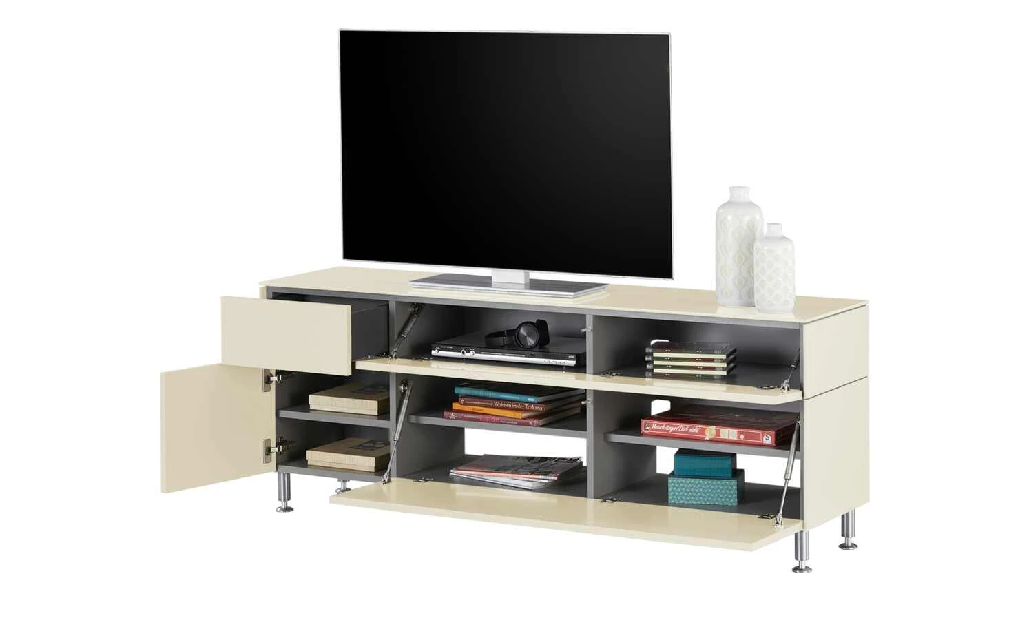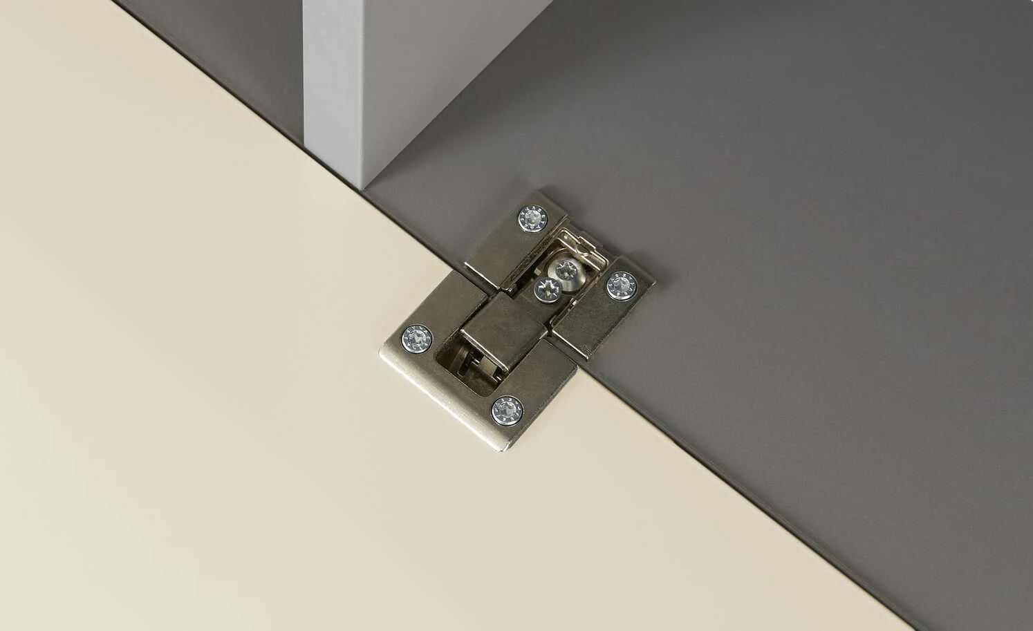 - Mehr zum Material: Korpus innen sowie Inneneinteilung: hochwertiger Schichtstoff auf Trägerplatte, grau, Oberflächenfinish Korpus und Front: seidenmatt
