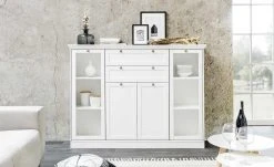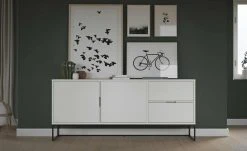 Auf dem TV-Lowboard Uno kommt Ihr Fernseher wunderbar zur Geltung. Das stylische Lowboard ist als Teil der Serie Uno mit dem German Design Award Special 2019 ausgezeichnet worden. Der Mix aus einer zurückhaltenden Linienführung und der modernen Farbe spricht für sich. Der weiße Lack hat einen matten Look, was die Farbe edel akzentuiert. Neben der breiten Stellfläche bietet Uno ein offenes Fach und Stauraum hinter zwei Türen. Die Rückwand ist mit einem Kabeldurchlass ausgestattet.