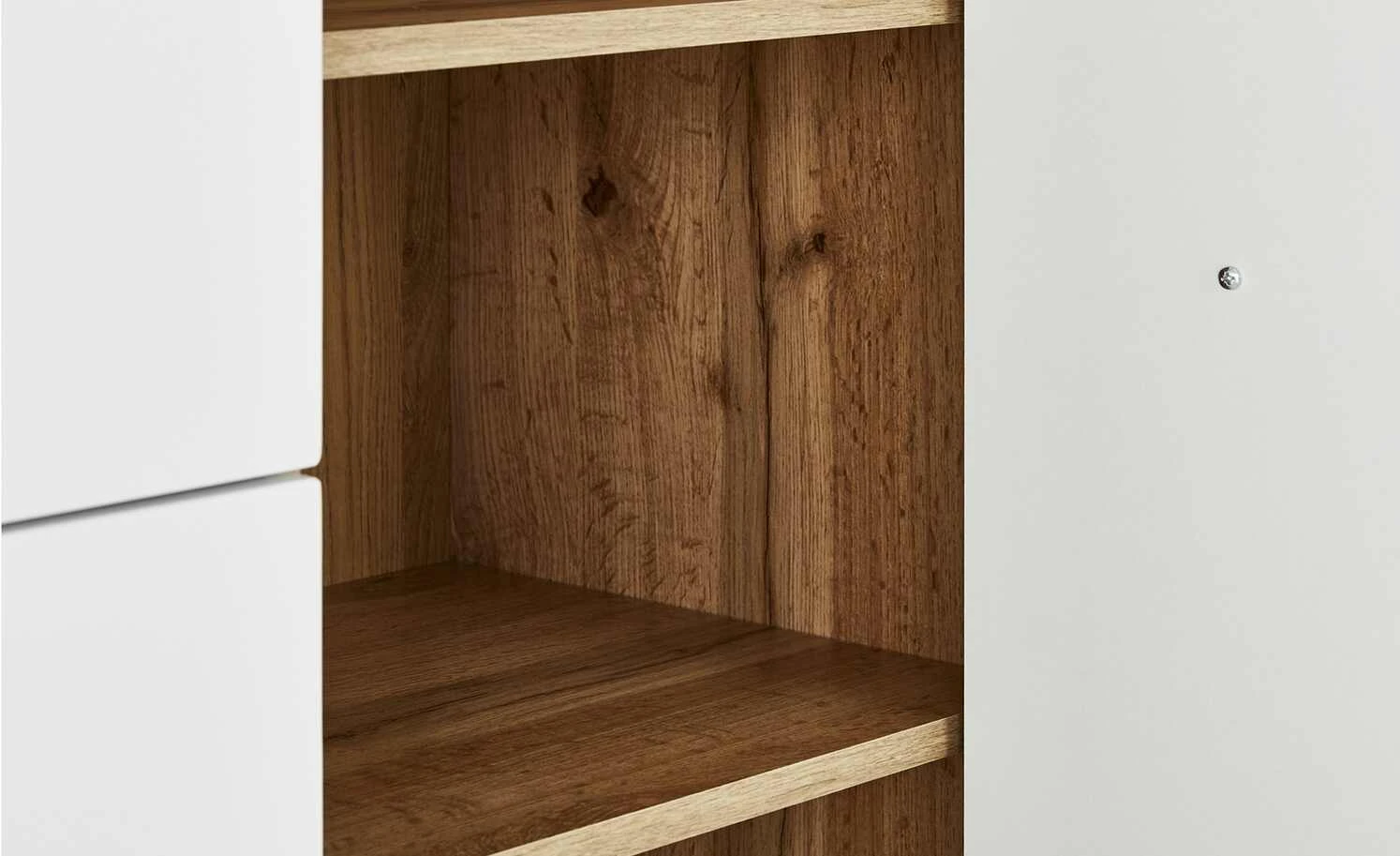 - Weiße Front mit auffälliger Hirnholzoptik