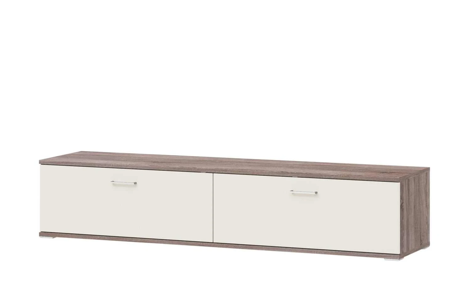 Modern designt und praktisch zugleich – das ist das Lowboard Onyx von uno. Der Korpus verfügt über eine robuste Melaminbeschichtung in dekorativer Holzoptik. Sie wird von der Hochglanzfront abgesetzt, die einen dezenten Vanilleton hat. Das Besondere an der Front: Sie unterteilt sich optisch in zwei Schubladen. Doch dahinter verbergen sich in Wirklichkeit vier geräumige Schubladen. Sie sind mit einem Selbsteinzug und einem Soft Close ausgestattet. Deshalb schließen sie langsam und geräuscharm.