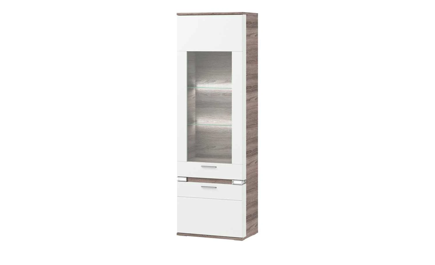 uno Vitrine Katt | Weiß / Eiche Trüffel (Nachbildung) links Frontbeleuchtung