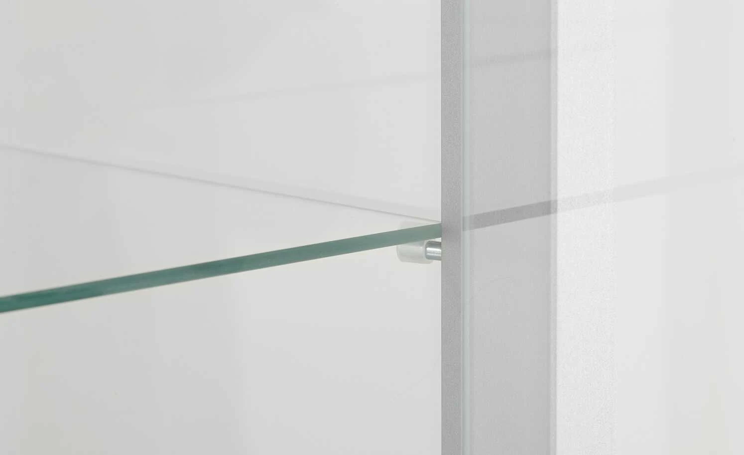 - Mehr zum Material: alle Glaselemente aus Sicherheitsglas, Bodenträger aus Stahl mit transparenter Hülse, mit Spiegelrückwand