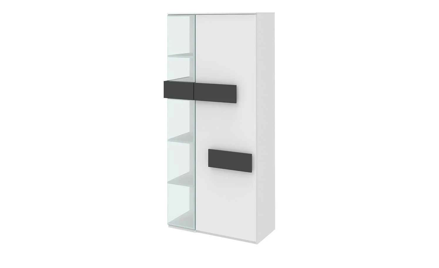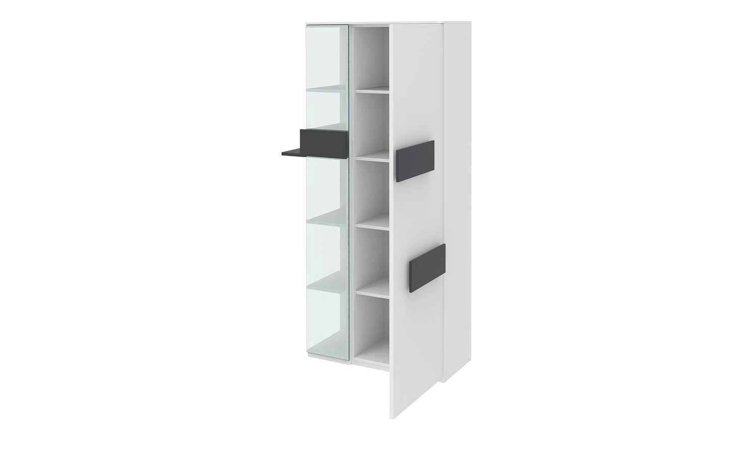 - Mehr zu Ausstattung / Funktion: Drehtür mit Metall-Topfbandscharnieren mit 110 Grad Öffnungswinkel, 3 Böden hinter der Glasfront, Regal mit Geheimfach, Front: 19 mm stark mit ABS-Kante, Korpus: 16 mm stark mit Dekorkante, 4 Böden hinter der Tür