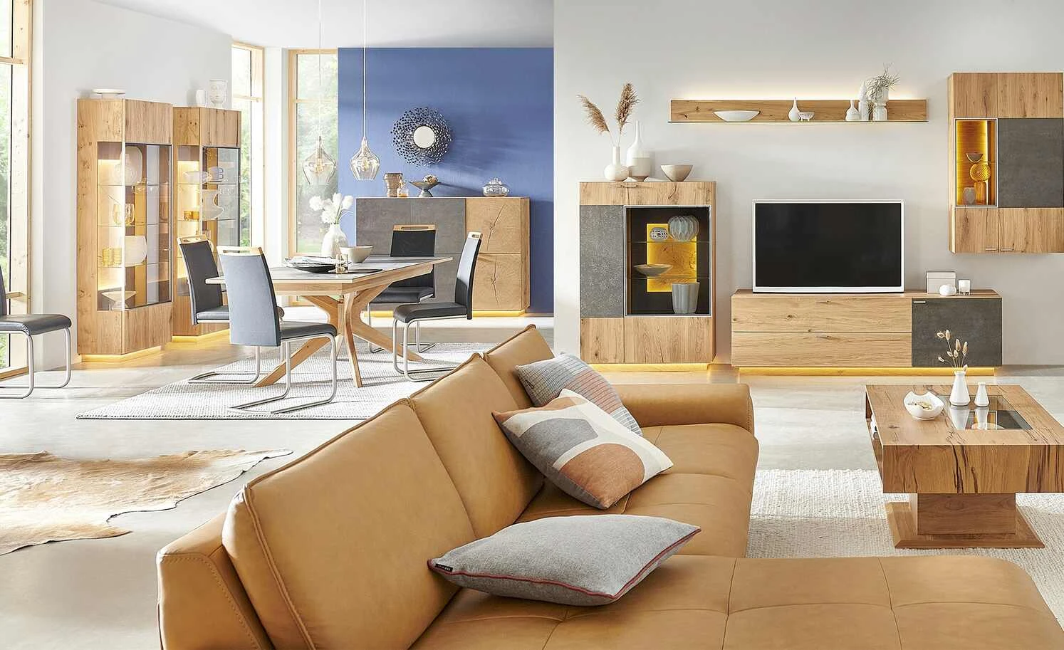 - Mehr zum Material: Griffe aus Aluminium haptisch gebürstet, Front und Korpus aus Holzwerkstoff furniert in Salzkammergut Alteiche natur