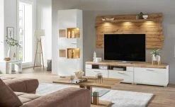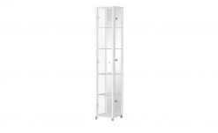 Präsentieren Sie schöne Gläser oder Porzellan in der Vitrine Solo. Die Vitrine hat drei Fächer mit Glasböden. Sie werden durch die mitgelieferte Beleuchtung ins rechte Licht gerückt. Die obere Tür ist in Höhe der Vitrinenfächer mit Glas abgesetzt. Für einen freien Blick ins Innere. Darüber hinaus gibt es drei Fächer, die bei geschlossenen Türen vor neugierigen Blicken versteckt werden. Solos Korpus ist mit Kerbuche furniert. Die Front besteht aus massiver Kernbuche.